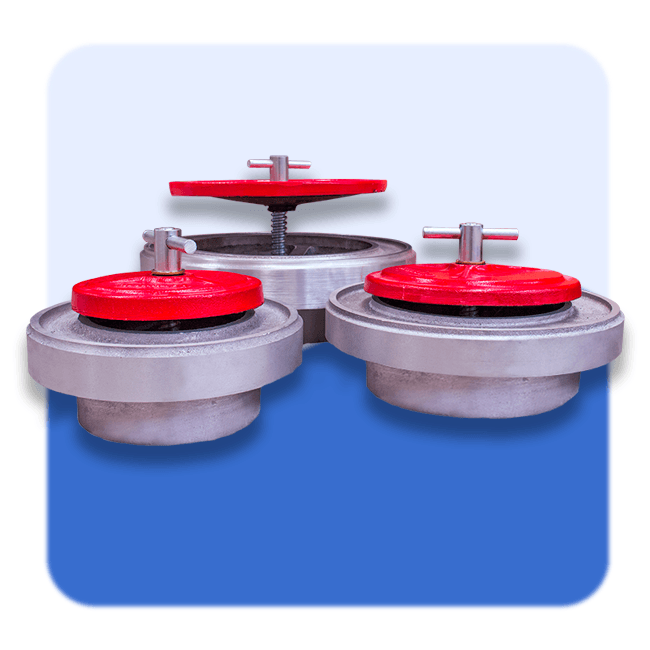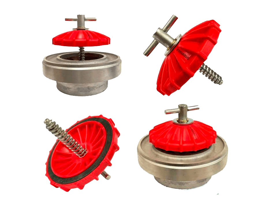 - Aluminum Cap: vulcanized nitrile rubber for long-lasting seal. Sizes: 6”, 8”, 10”, 12”, 14”.